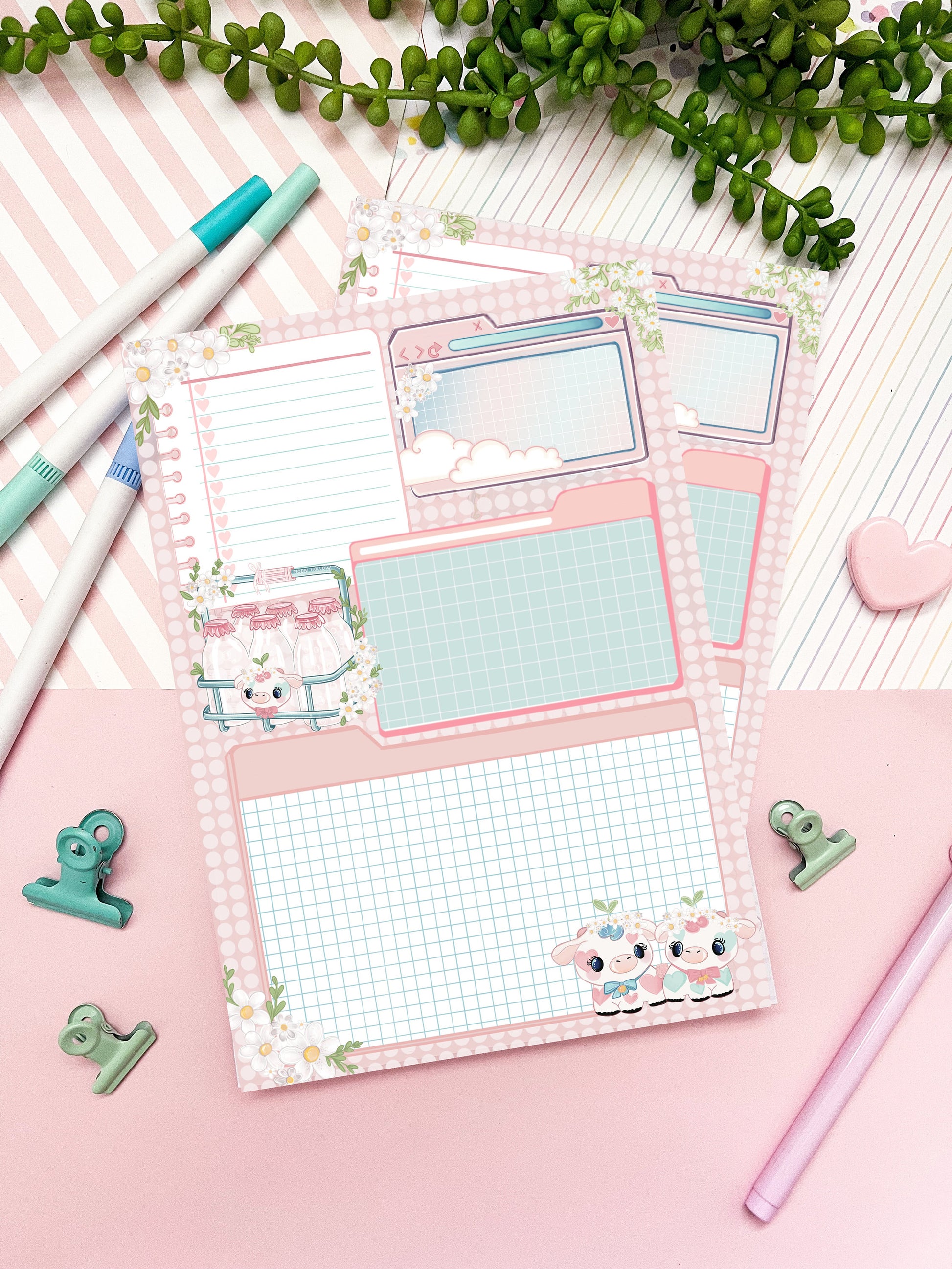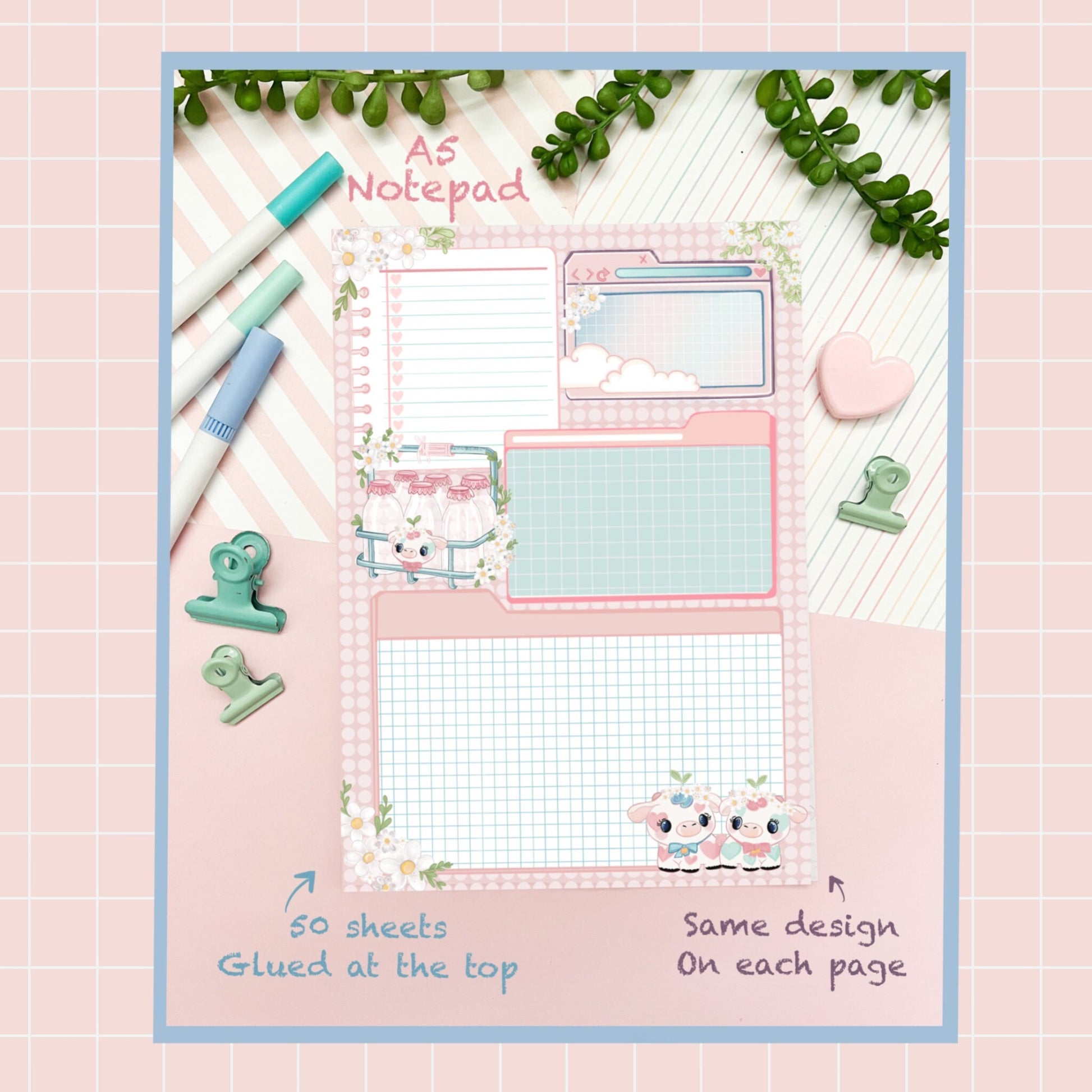 A5 kawaii Notepad . cute planner, notepad. Organisational planner, Memo pad. Notes. Journal, bujo. Organisational planner. Cute cow.