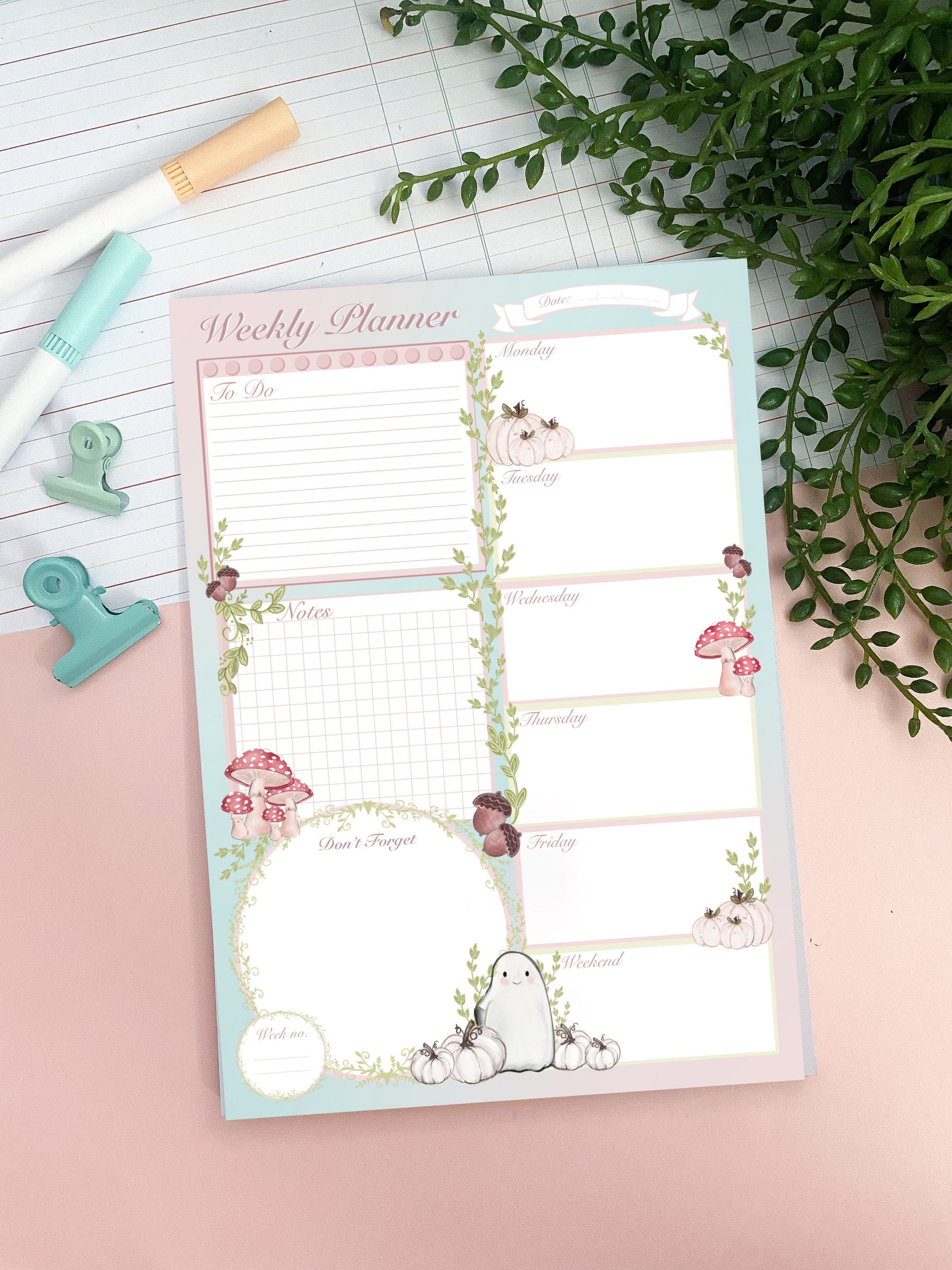 A5 Autumn / Fall Weekly Planner . Halloween planner, notepad. Organisational planner, Memo pad. Notes. Journal, bujo