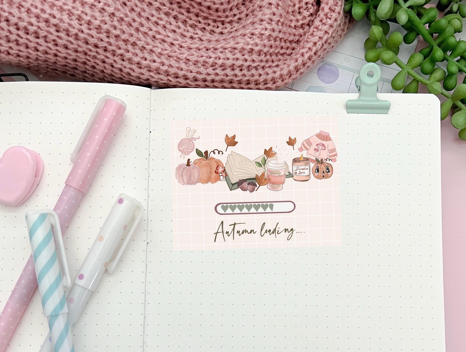 Autumn loading, vinyl die-cut sticker/ Digital art, decals. gift stationery Bujo , bullet journal, laptop, tablet sticker.