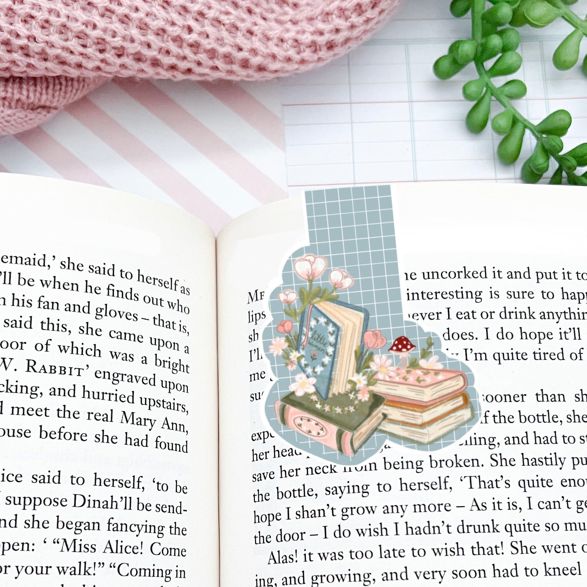Cozy book lover Bookish magnetic bookmark / Digital art, books , reading kawaii cute stationery