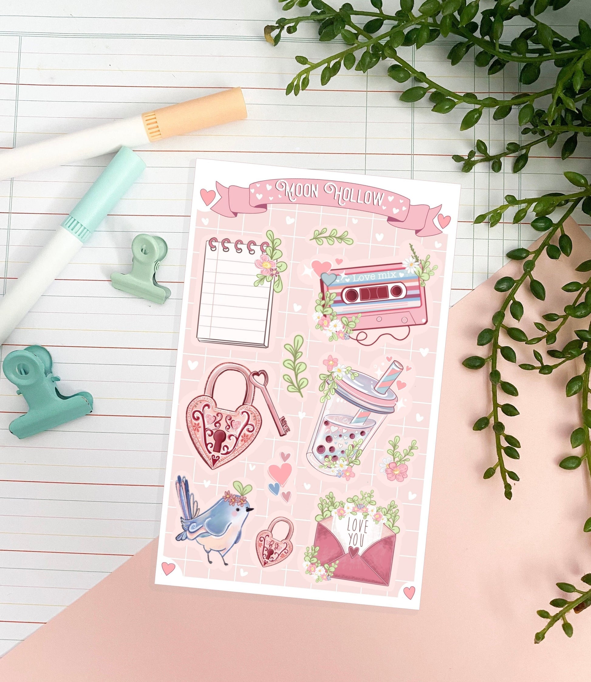 Cute Valentine’s sticker sheet, journal stickers. Planner stickers. Illustration, Stationary, bullet journal planner sticker sheet 1pcs, Illustration, Kawaii, Stationary, cute,cottagecore, bujo