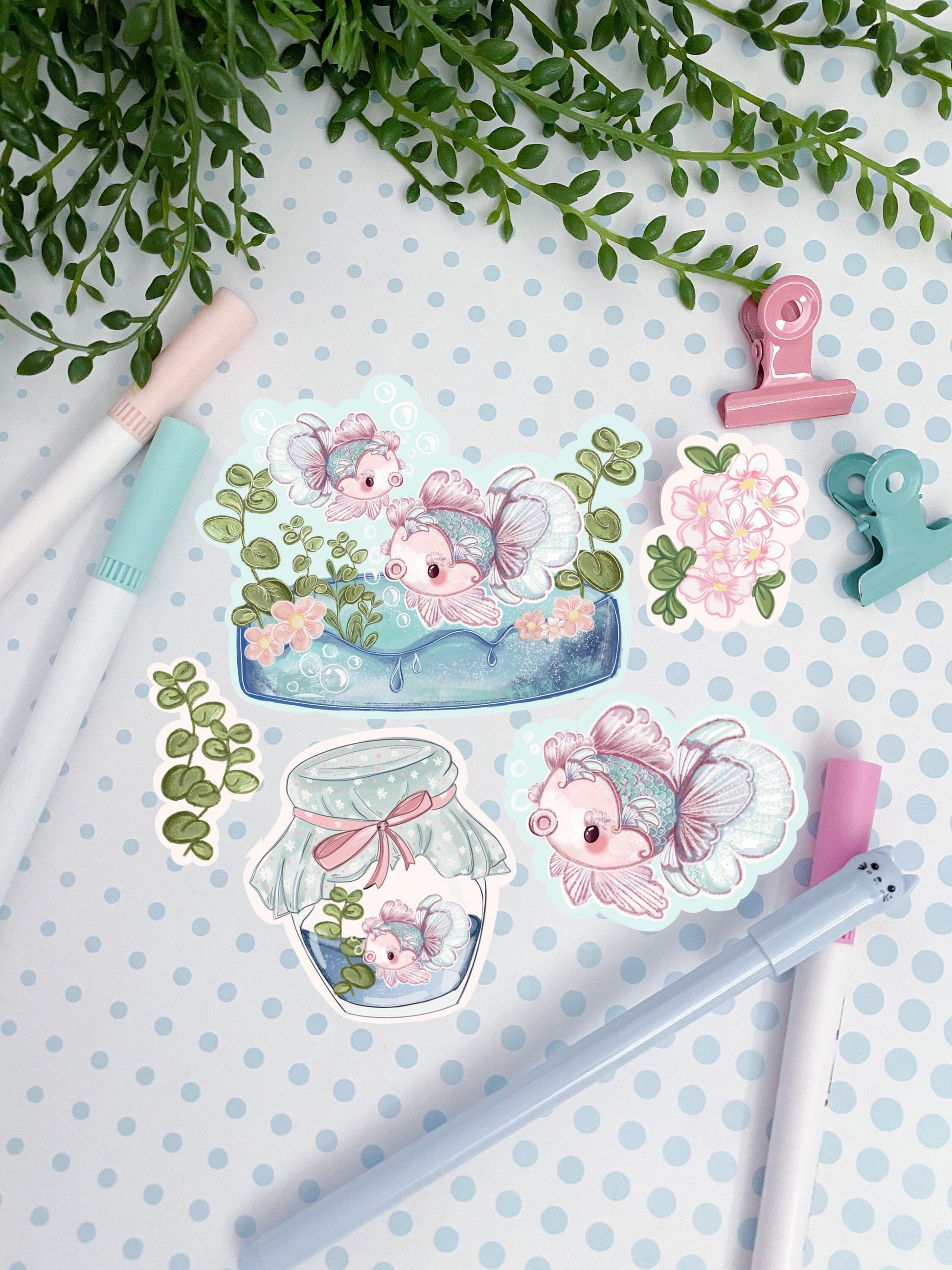 Goldfish kawaii Sticker pack. Cute journal decorations. Stickers for planners. Japanese inspired journaling. Adorable stationery supplies.