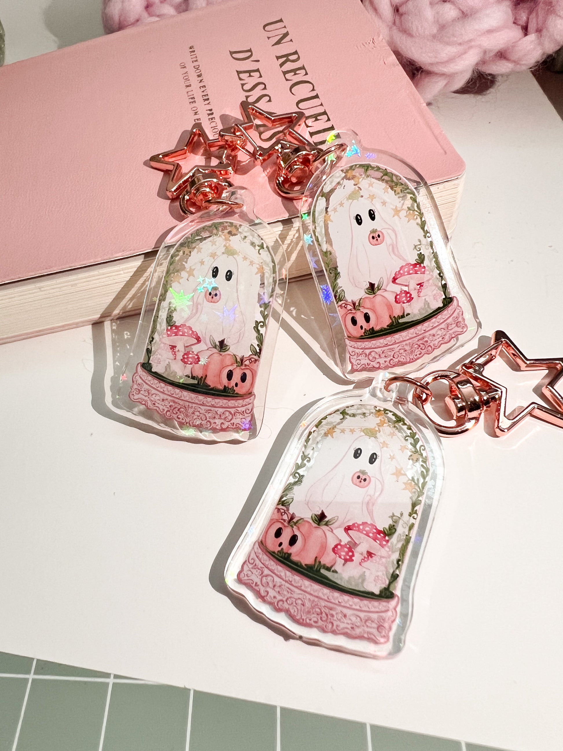 Holographic Pumpkin Ghost Halloween acrylic key charm