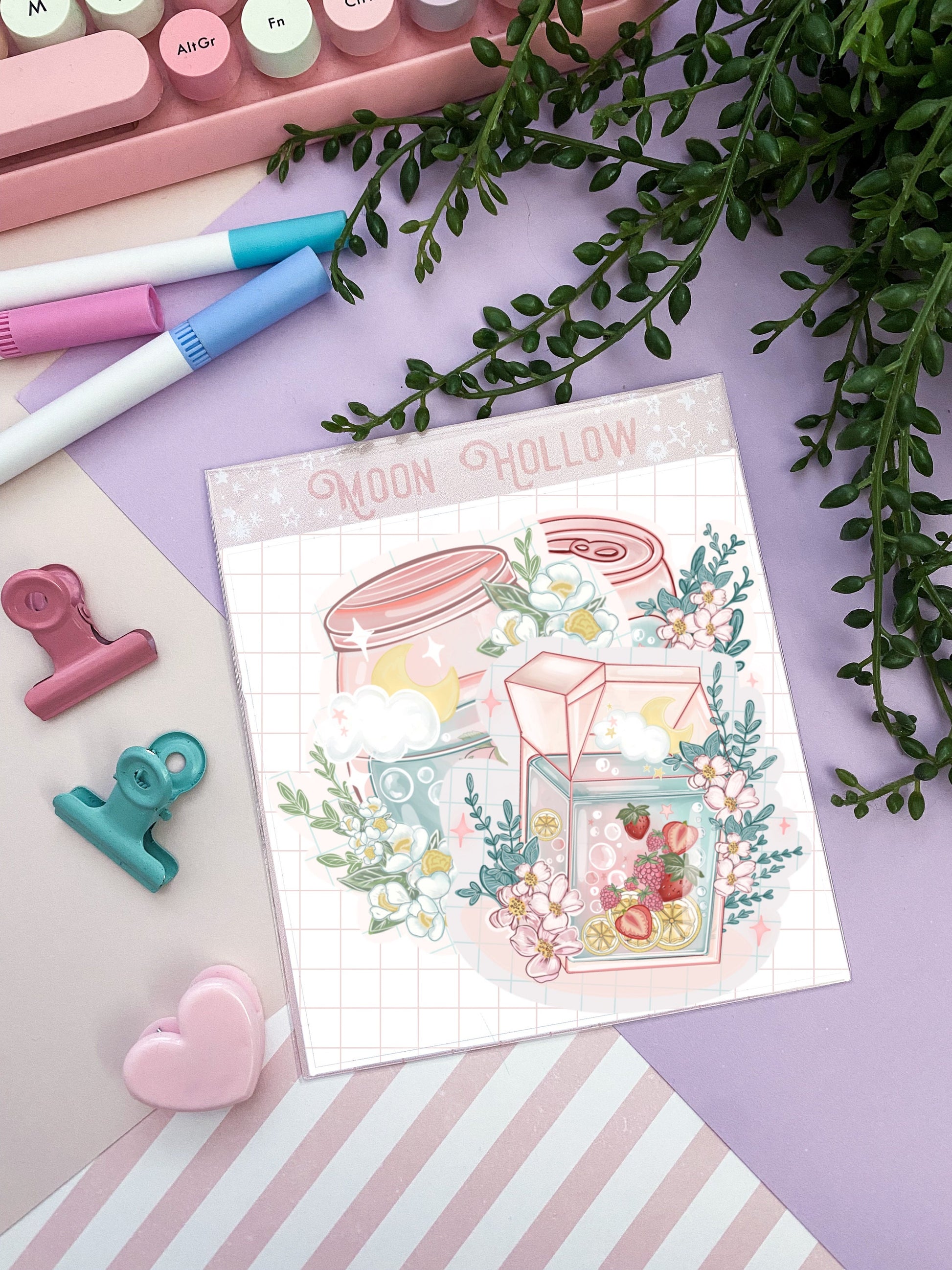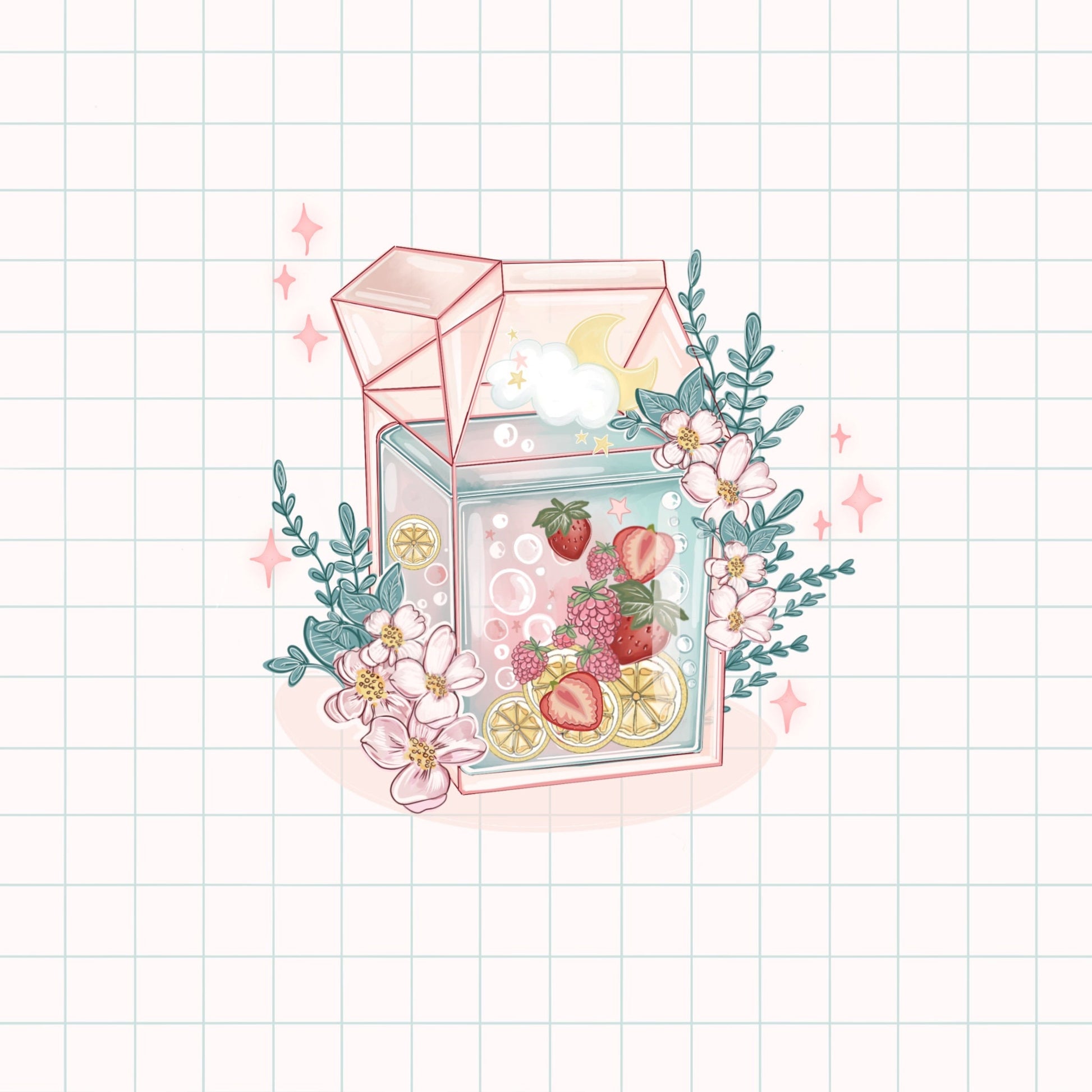 Kawaii fruit juice drink sticker pack// Digital Art, Stickers, Kawaii Illustration, space, Stationary, Magic, fruit, bujo bullet journal.