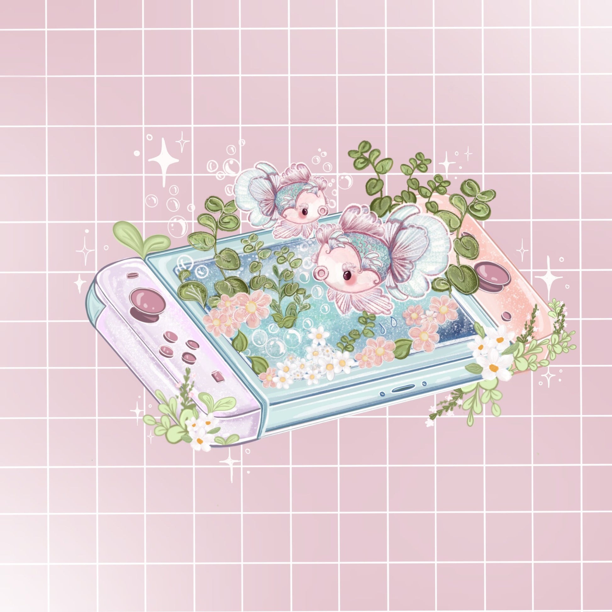 Kawaii gaming goldfish sticker , Anime Digital Art, Stickers, Kawaii Illustration, space, Stationary, Magic, game, bujo bullet journal.