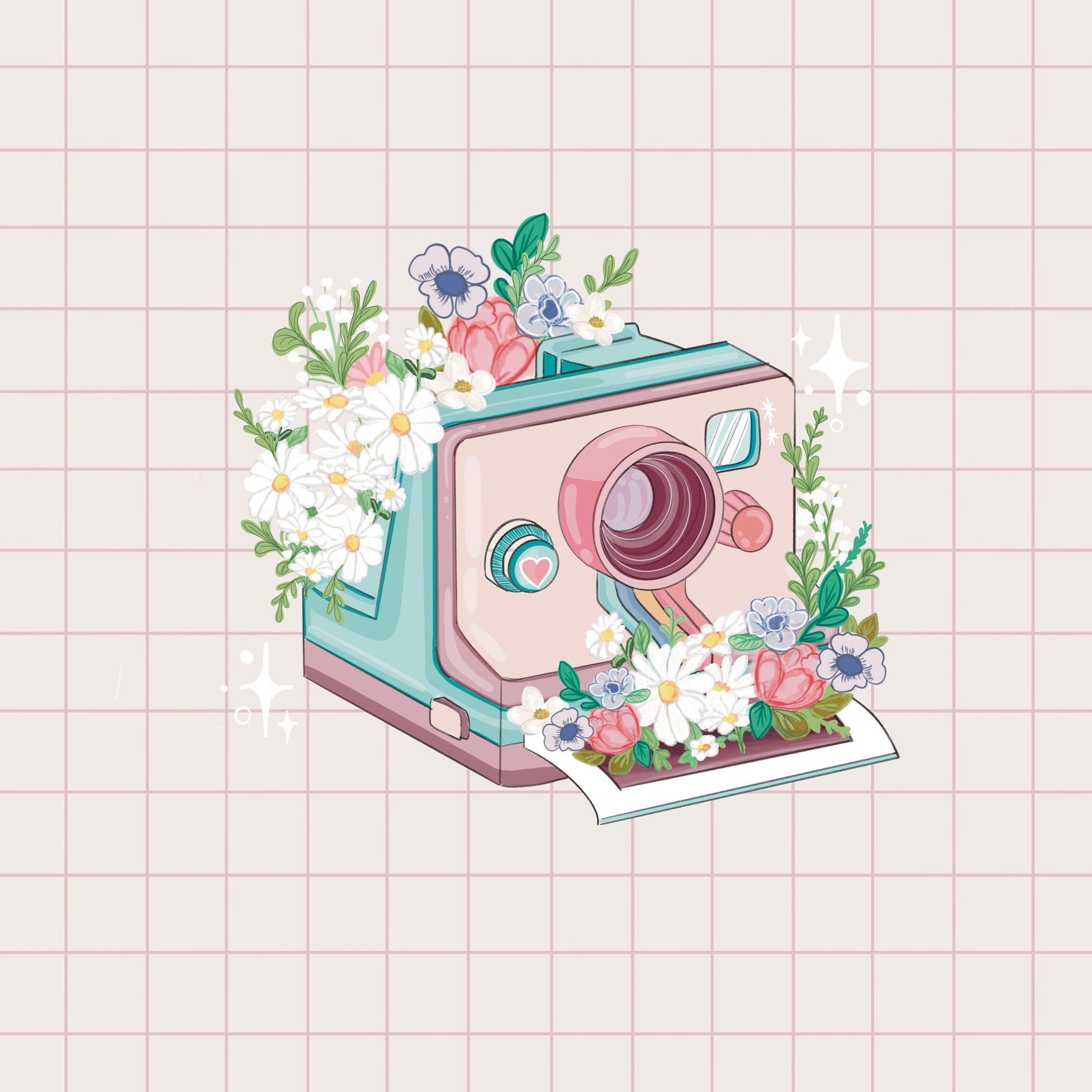 Kawaii instant camera rainbow flower sticker pack// Digital Art, Stickers, Kawaii Illustration, space, Stationary, Retro , bullet journal.