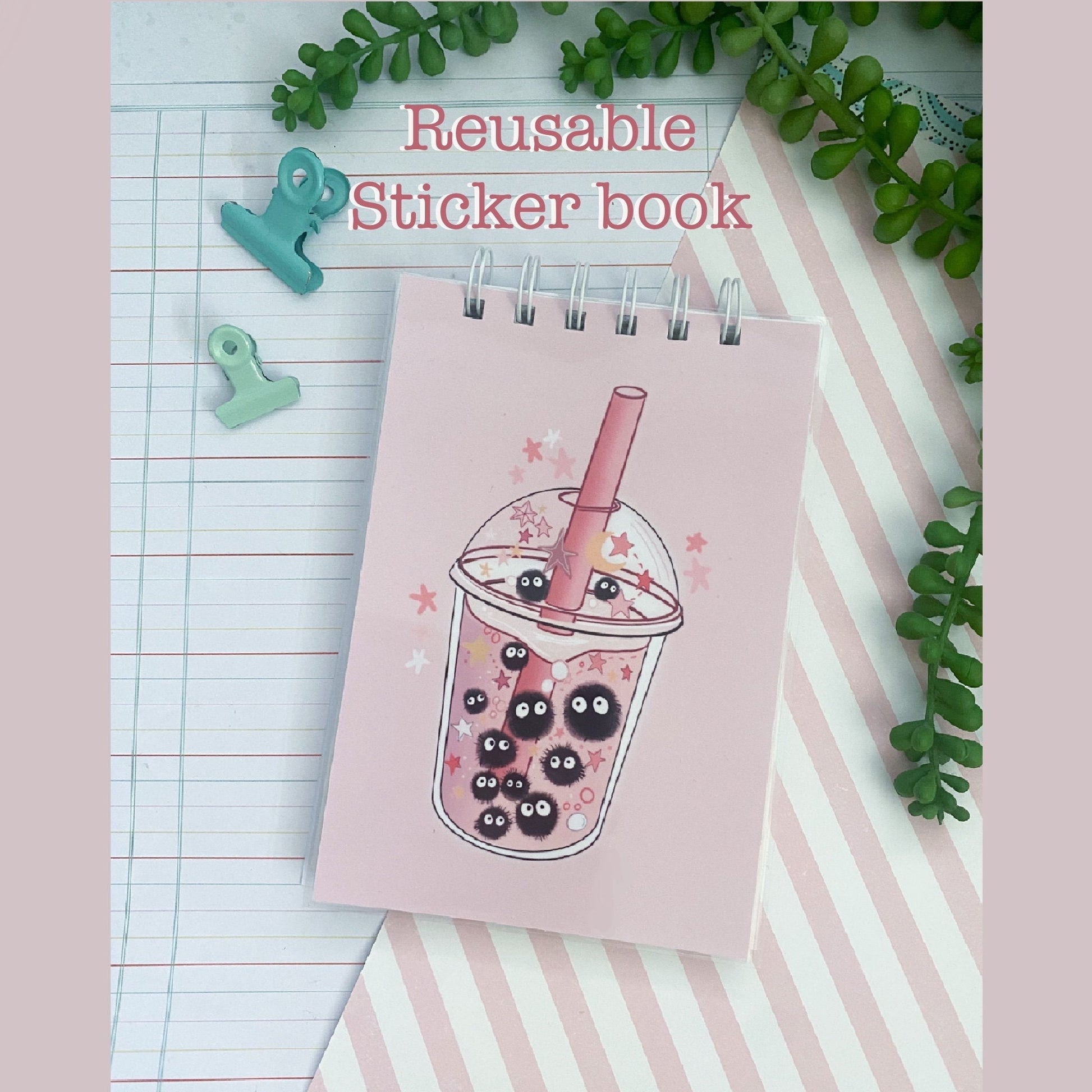 Kawaii Reusable Sticker Book, Reusable Sticker Album, 6x4 inch Sticker Book, Silicone Release Paper, Bubble tea Sticker Storage Book