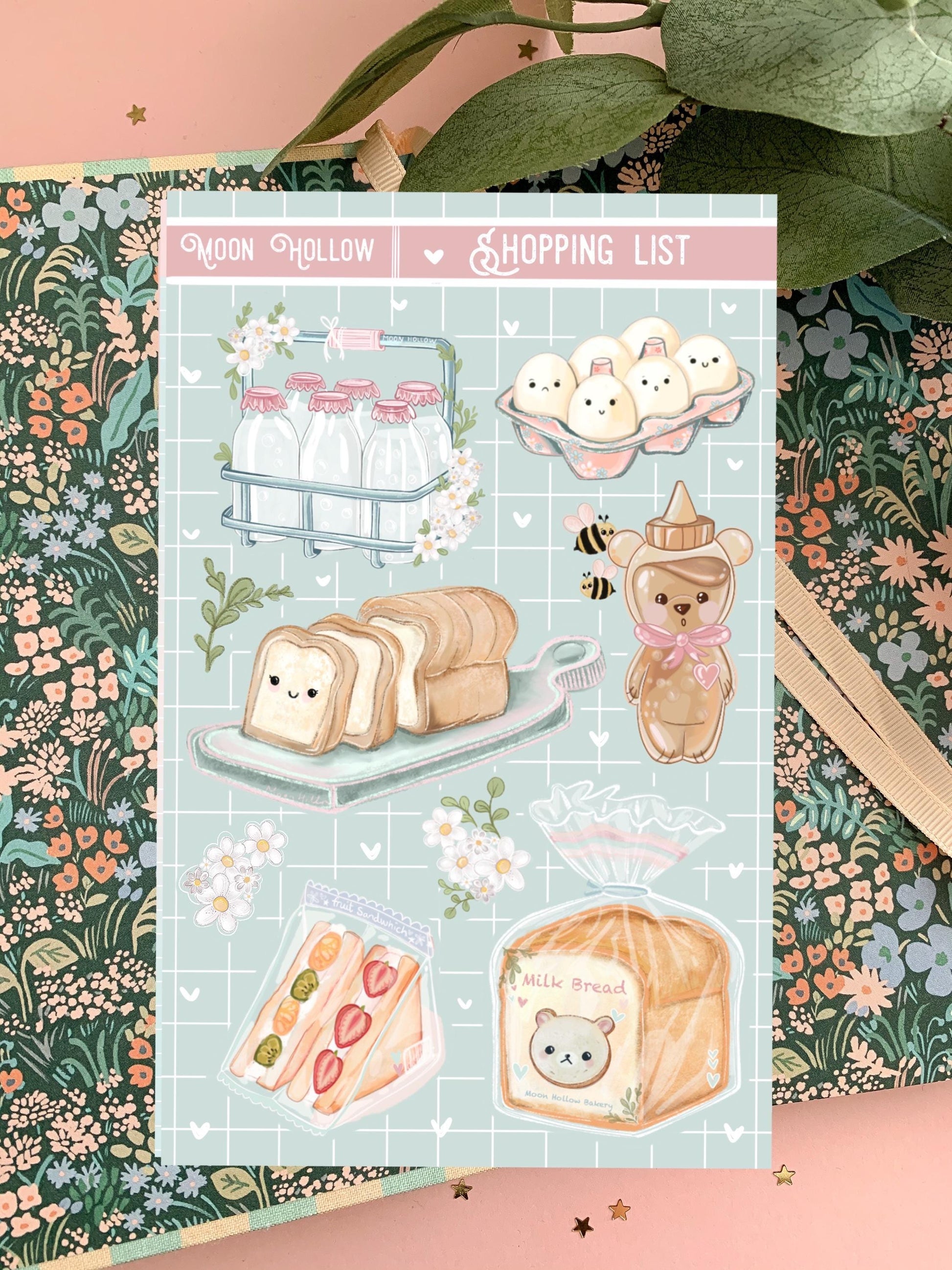 Kawaii Shopping List Journal Sticker Sheet | Cute Planner Stickers | Adorable Grocery List Stickers | Fun Organization for Your Planner