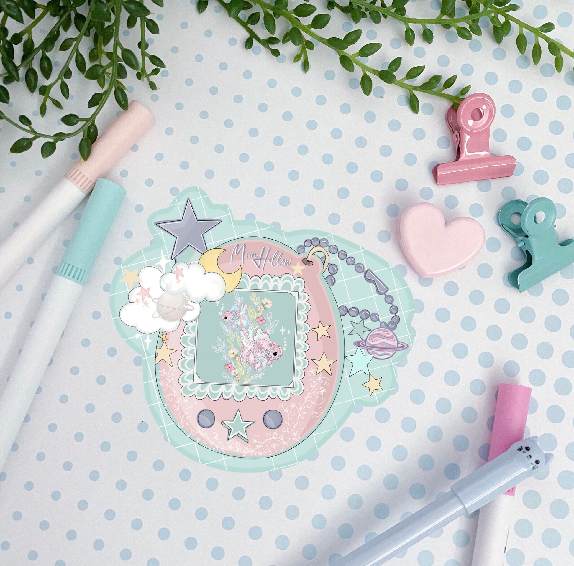 Moon Hollow Game Kawaii sticker - Tamagotchi inspired cute fish sticker, illustration, digital art, cute bullet journal and planner stickers