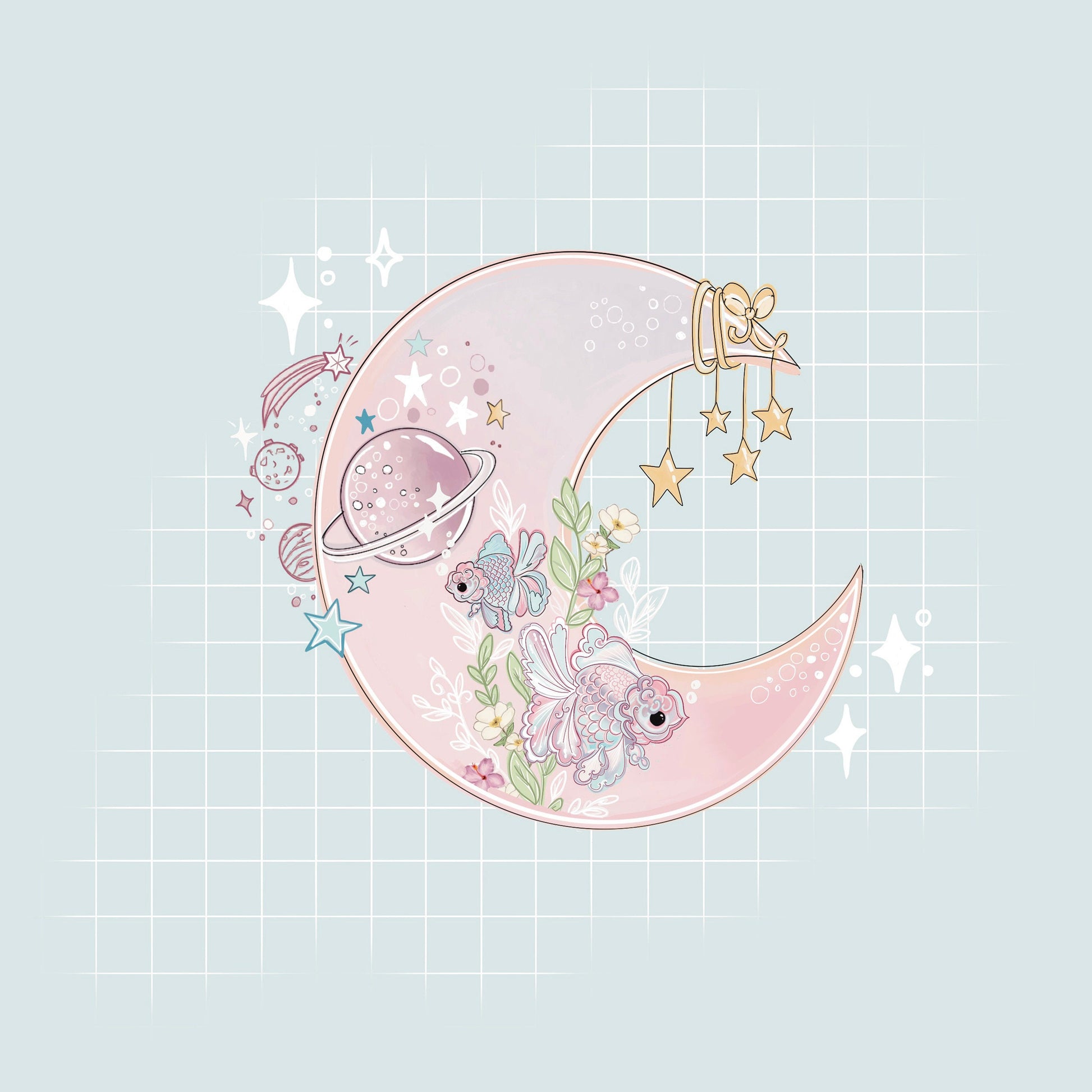 Ocean Moon cute die-cut sticker/ Digital art, laptop decals. Cute kawaii gift, Bujo ,bullet journal, laptop, iPad