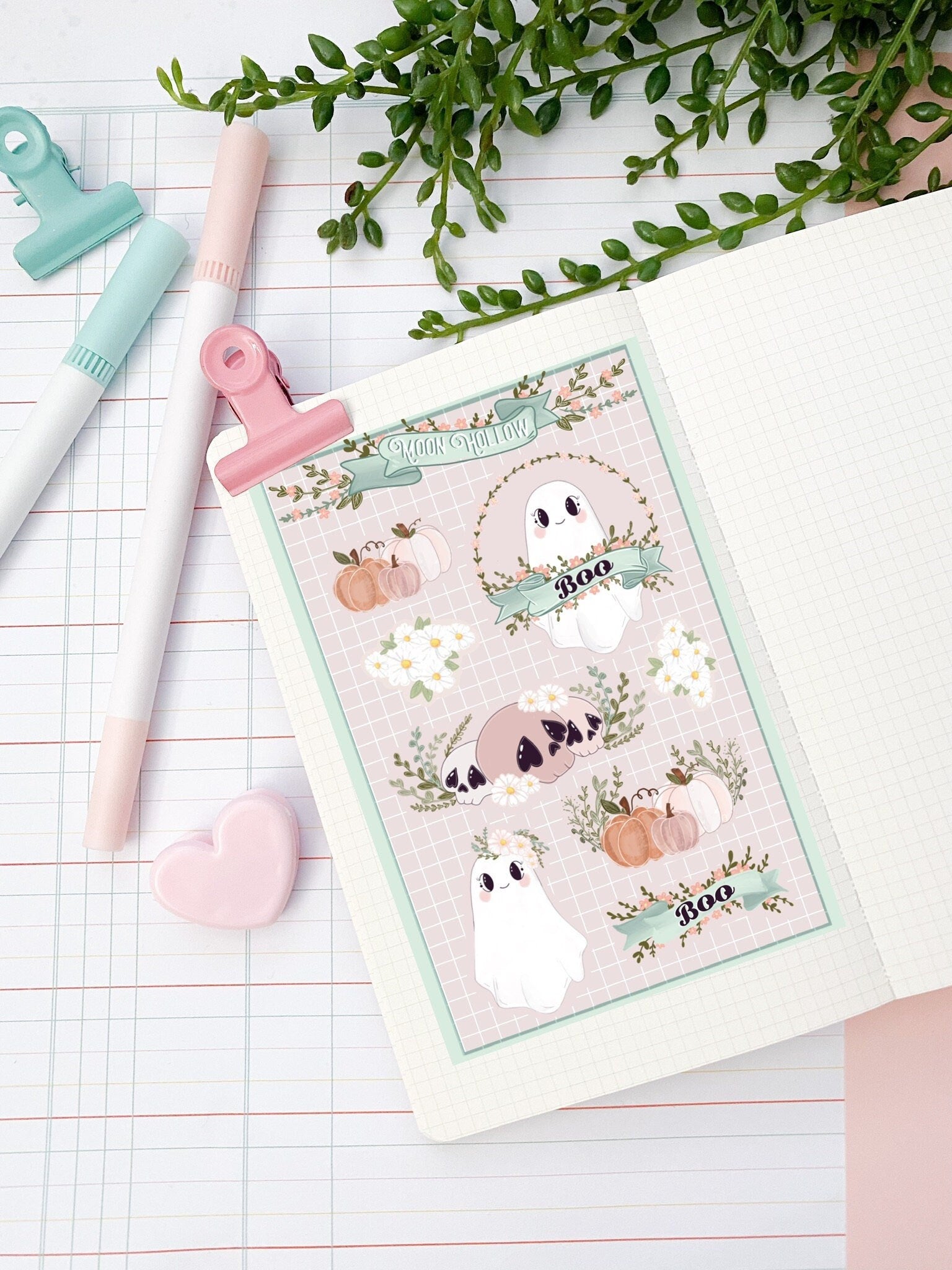 Pastel spooky boo sticker sheet// Digital Art, Stickers, Witch, Illustration, crystal , Stationary, Magic , bullet journal.
