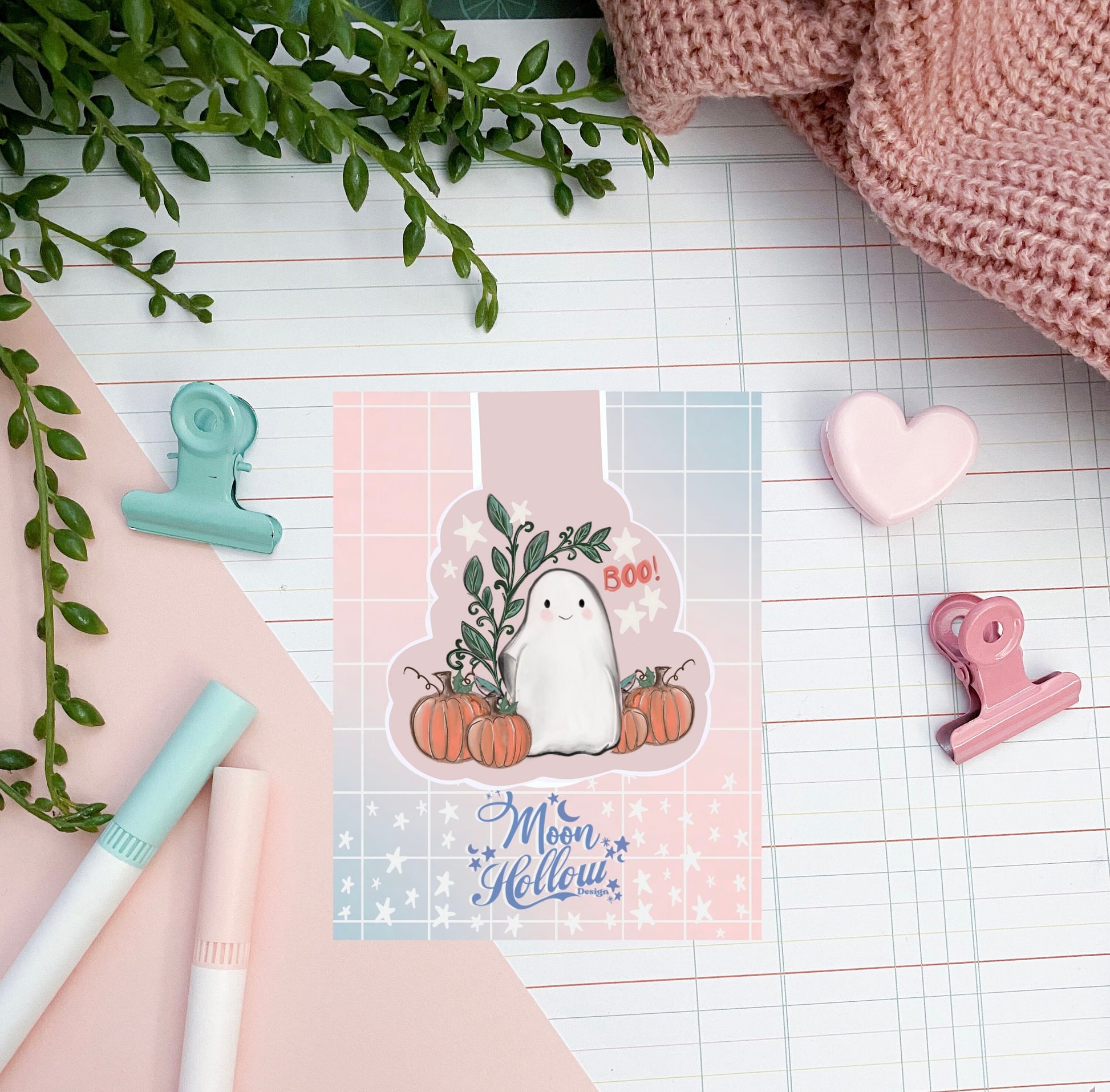 Pumpkin ghost magnetic bookmark / halloween bookmark / Digital art, books , reading Halloween fall gift, spooky cute stationery