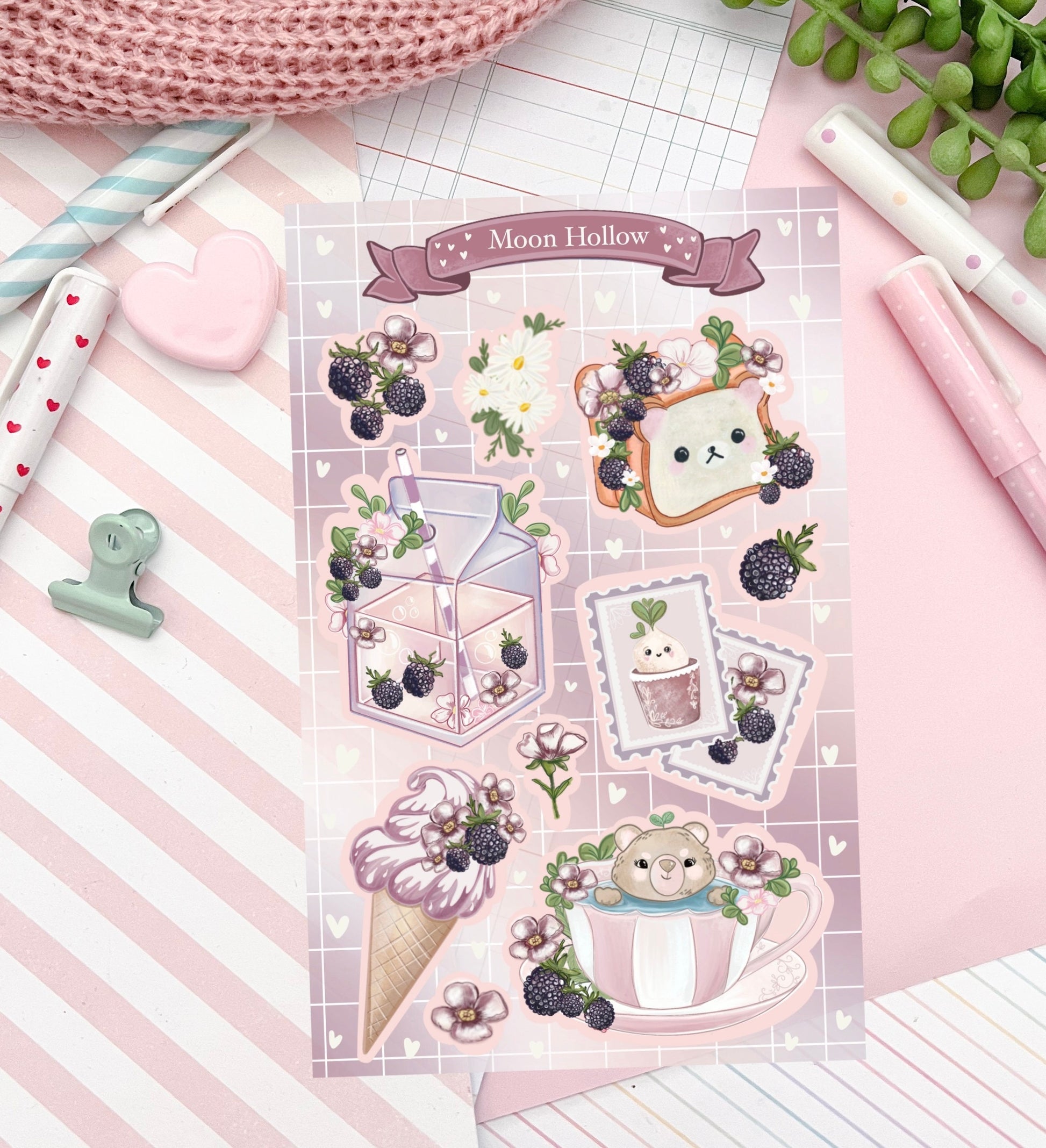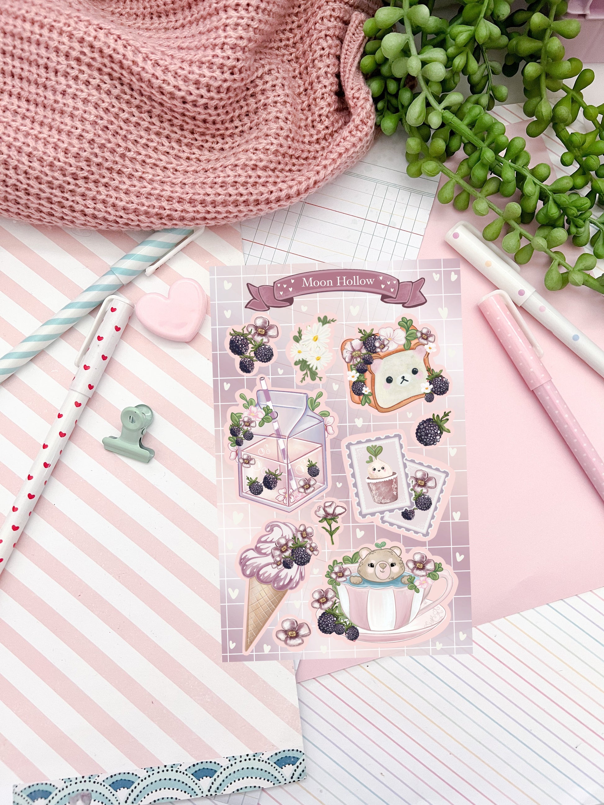 Blackberry fruit aesthetic sticker sheet, Hand drawn, Stickers, Moon Illustration, journaling, Stationary, Bujo, scrapbook bullet journal.