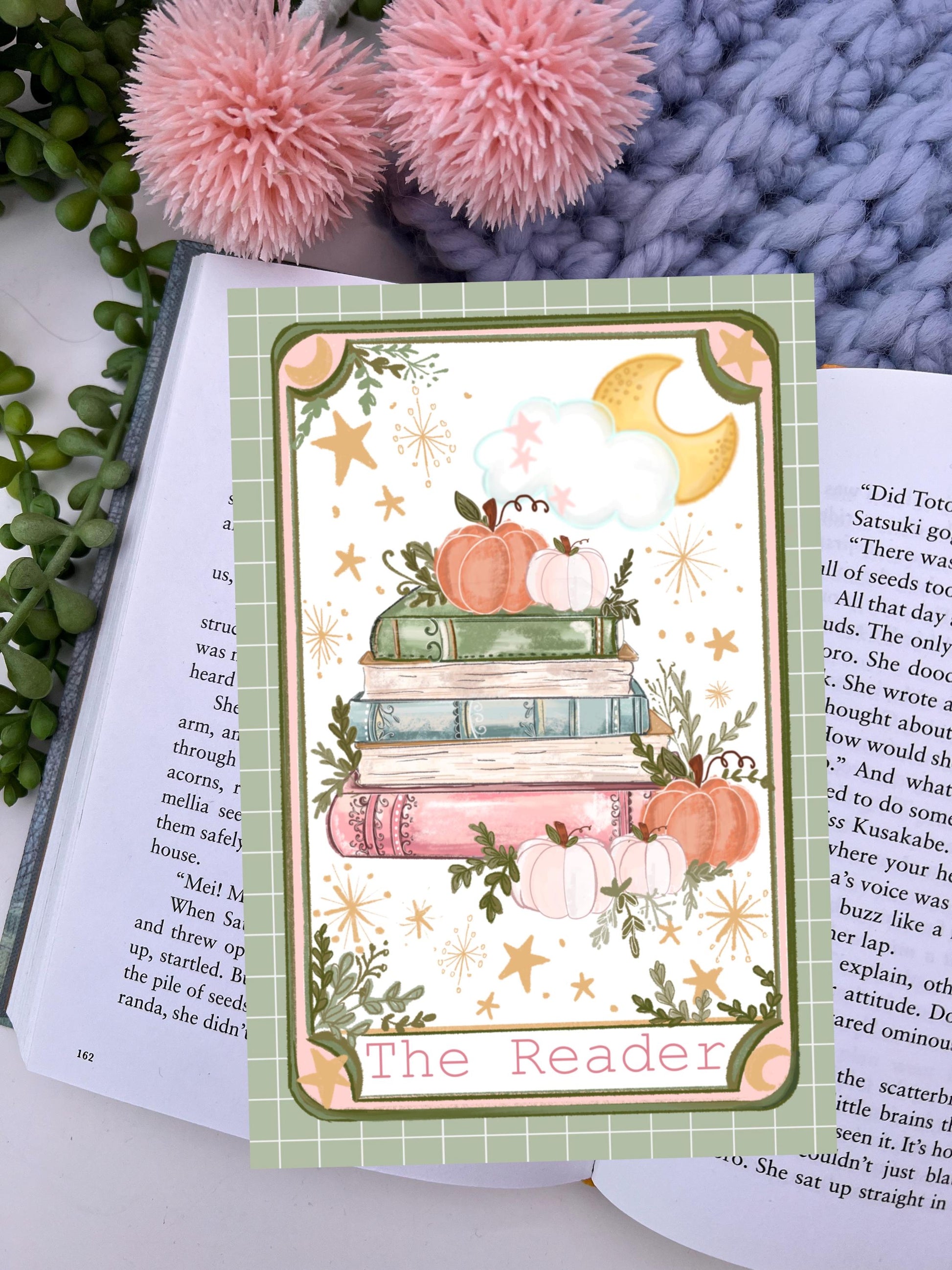 The Reader tarot card art print. Autumn art, Halloween art print. Home interior cute art print.